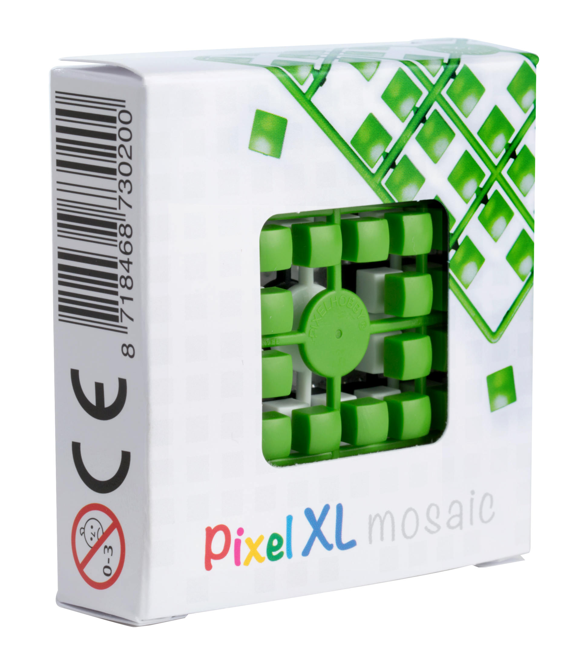 Inhoud: 1 herbruikbare basisplaat (6x6 cm) en 3 XL pixelmatjes.